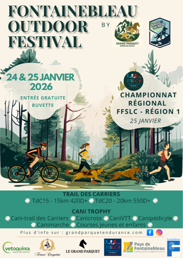 Nous avons le plaisir de vous annoncer notre présence durant le Cani Trophy Fontainebleau 2026 se déroulera les 24 et 25 janvier 2026 au Grand Parquet de Fontainebleau, dans l’écrin exceptionnel de la forêt domaniale. Organisé par La Team des Sénons en partenariat avec Grand Parquet Endurance et le club Cani Sports Melun, cet événement s’impose comme un rendez-vous incontournable pour les passionnés de sports canins en région parisienne.